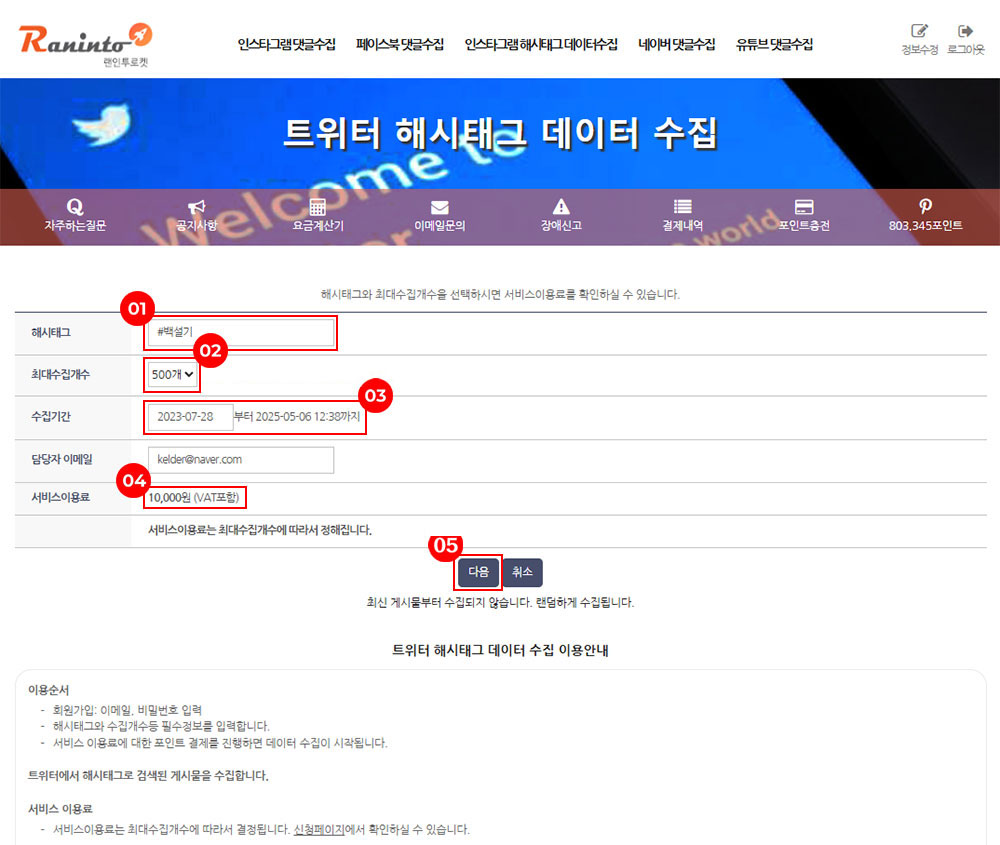 인스타그램해시태그데이터수집2의 수집기간이 최대 32일에서 40일로 변경되었습니다. (2025.01.17)